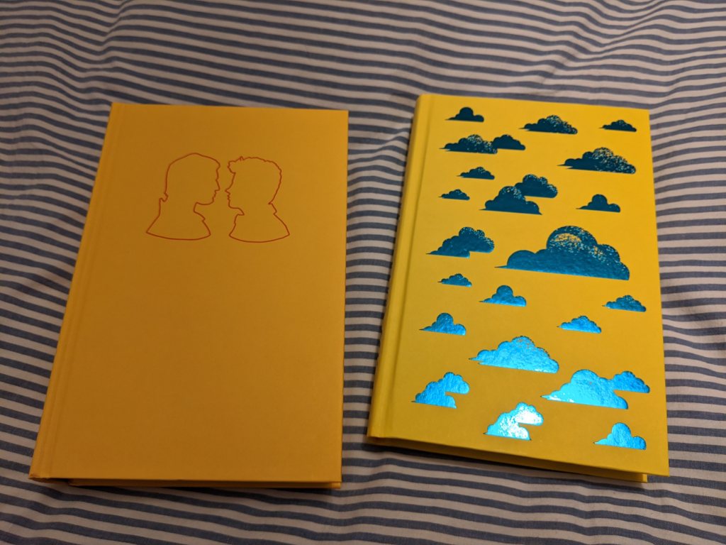 For Christmas my partner bought me signed hardbacks of Carry On and Wayward Son (I had first read the books on my Kindle). They’re so bright and yellow – months later it still makes me happy whenever I see them on my shelf. The Watford map on Carry On’s endsheets and the shiny blue clouds on Wayward Son’s cover are particularly nice touches. The package came with a packet of gorgeous illustrated cards too.