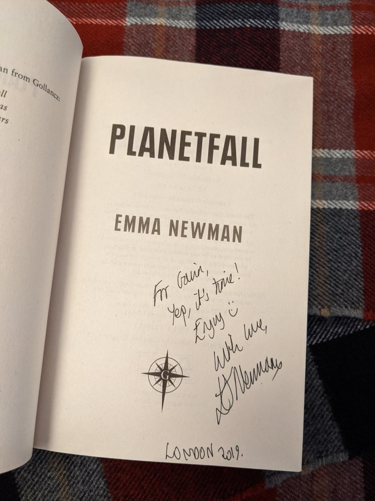 Having not read any of Emma’s books before, I picked up Planetfall, the first in the series, which had been on my TBR list for a long time. I mentioned this to Emma as she was signing my book and she personalised it to suit.