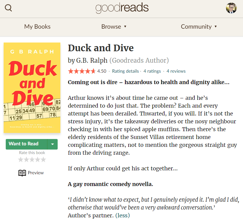 I’ve scored a bunch of ratings and reviews on Goodreads too! You can head there to add Duck and Dive to your reading list, or if you’ve already read it you can throw a few stars my way, if you like.