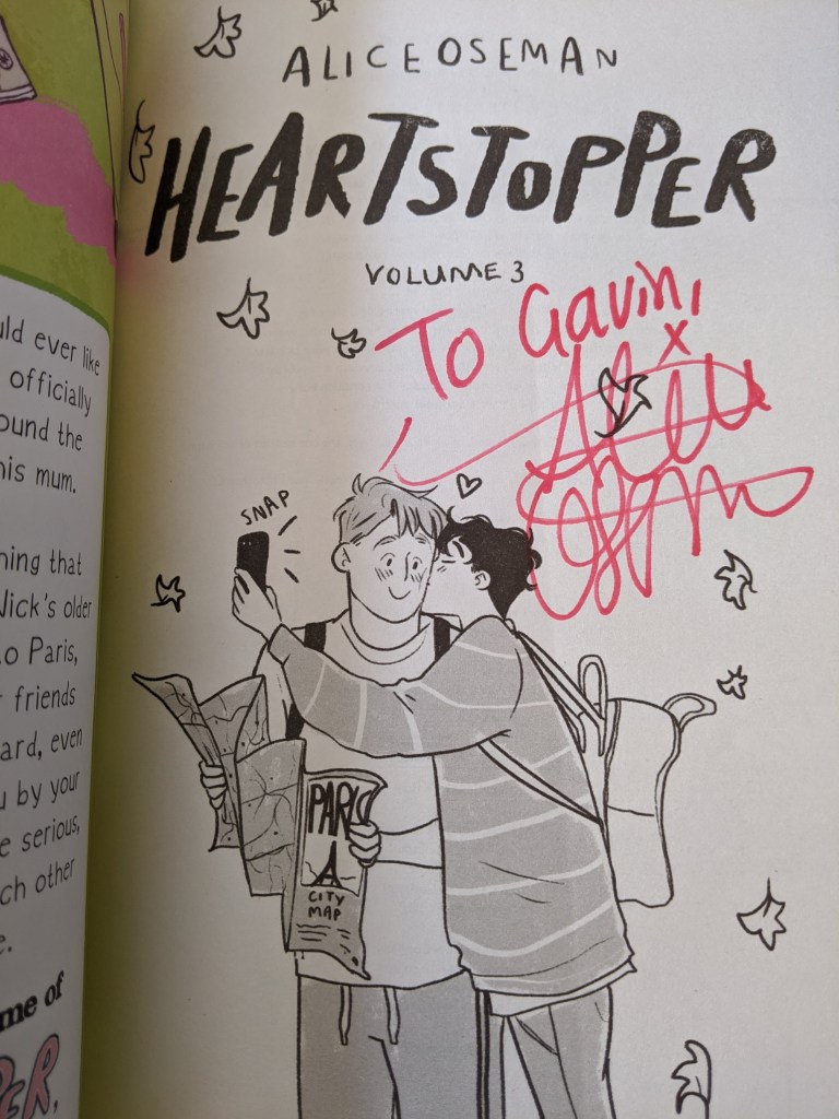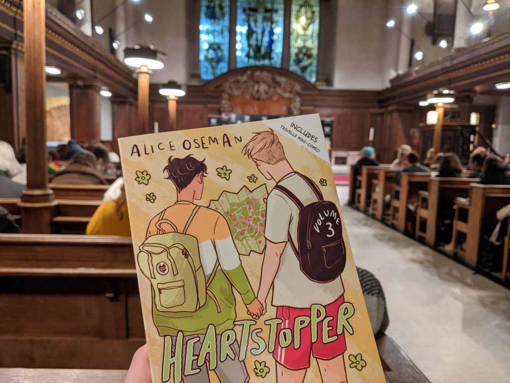 I attended an event earlier this year to celebrate the release of Heartstopper Volume 3 with Alice at St James’s Church Piccadilly in London. It was a wonderful interview, followed by a Q&A with the audience and a book signing.