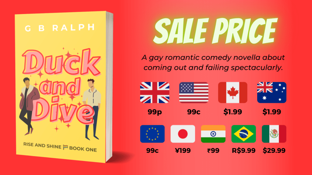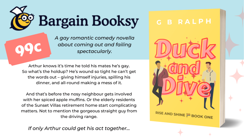 Bzz bzz bzz 🐝 Bargain Booksy has Duck and Dive listed at 99c for the US Kindle store! This follows on from last week’s feature on The Fussy Librarian. Grab your copy now, or you can check out Bargain Booksy’s other LGBTQ bargains.