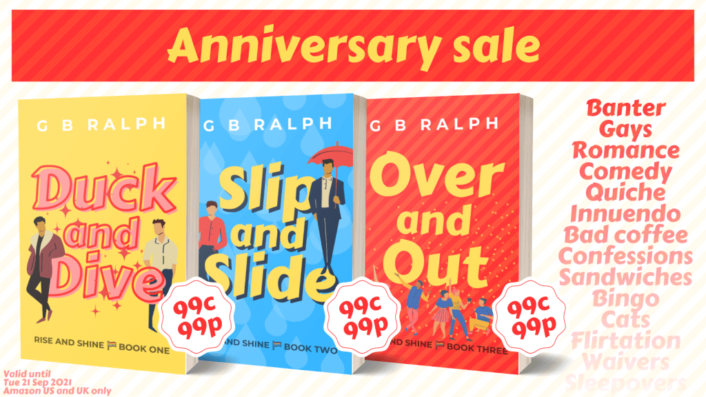 This series of gay romcom novellas has buckets of banter, dashes of comic tragedy, and more food and booze than any story ought to have. What started off as a funny little short story soon got out of control, growing into a novella before becoming three! I was just having too much fun with the characters…