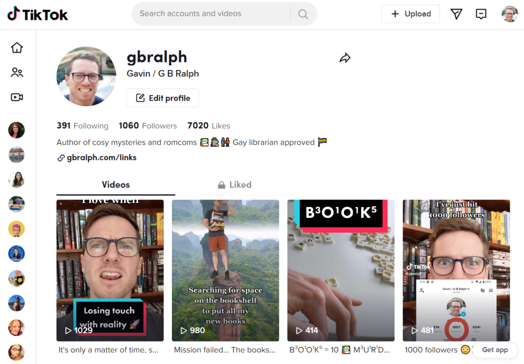 - I joined TikTok. I avoided it for years, thinking it was just a dance app for the kids. But it’s been six weeks since I started posting silly bookish videos and I’ve been so delighted and inspired by all the readers and writers over there. I am still regularly baffled by the platform, but I can’t get over how fast-paced, enthusiastic, and energetic it all is. If TikTok is your jam, find me at @gbralph. But if not, I totally get that, and will still be focussing here on my mailing list for all the best stuff!
