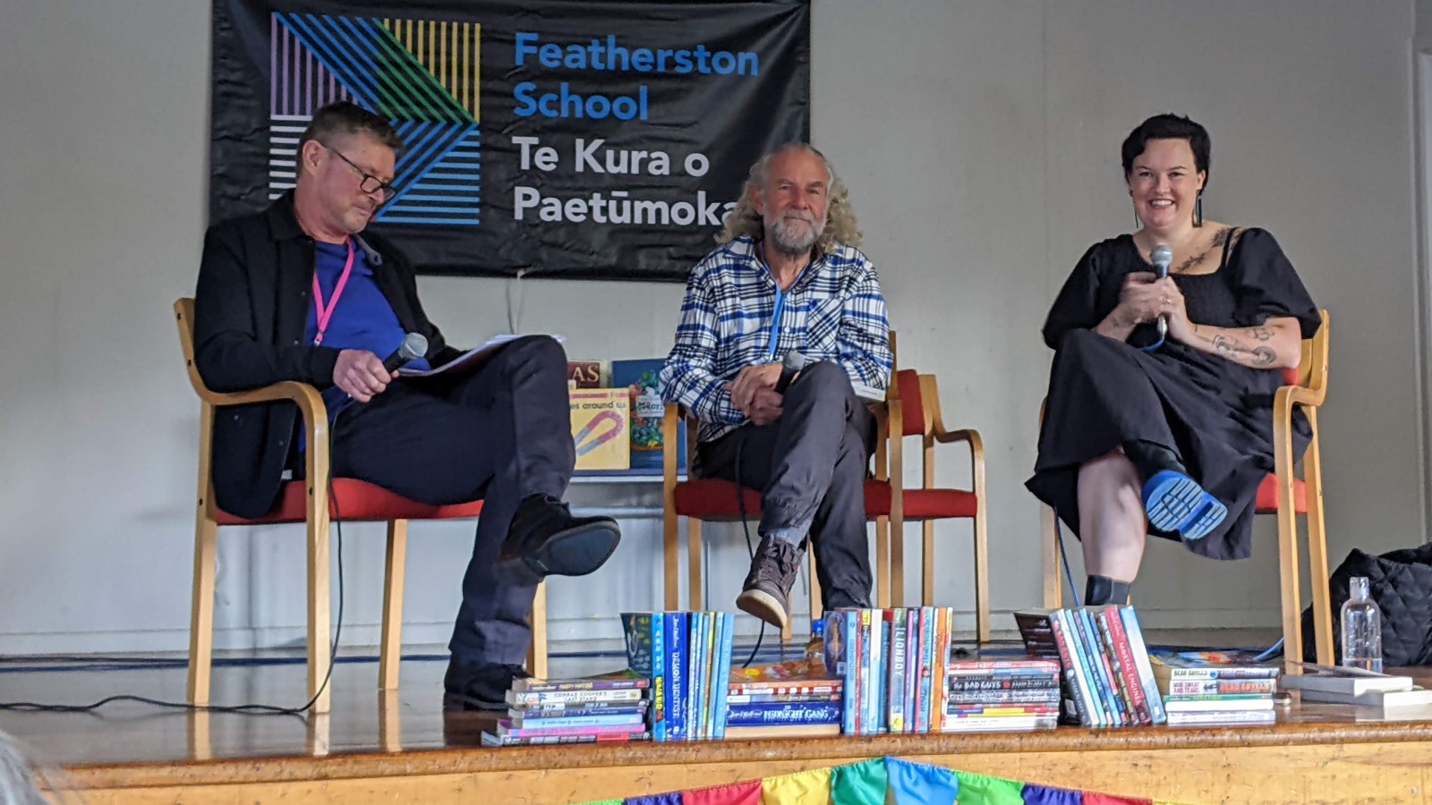 Held at the Featherston School Hall, this talk focused on a few alternative ways of publishing stories and reaching readers. The entire hour was such a delight, with so many hilarious and fascinating anecdotes from panellists Emily Writes and Martin Baynton, and moderator Mike White. I was so engrossed that I completely forgot to take any notes – oops!