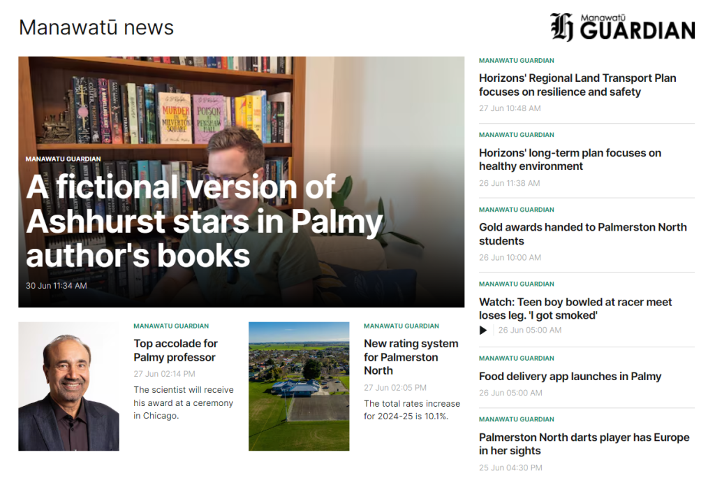 Here’s a bonus screenshot of how the article appears on the Manawatū Guardian’s front page today: