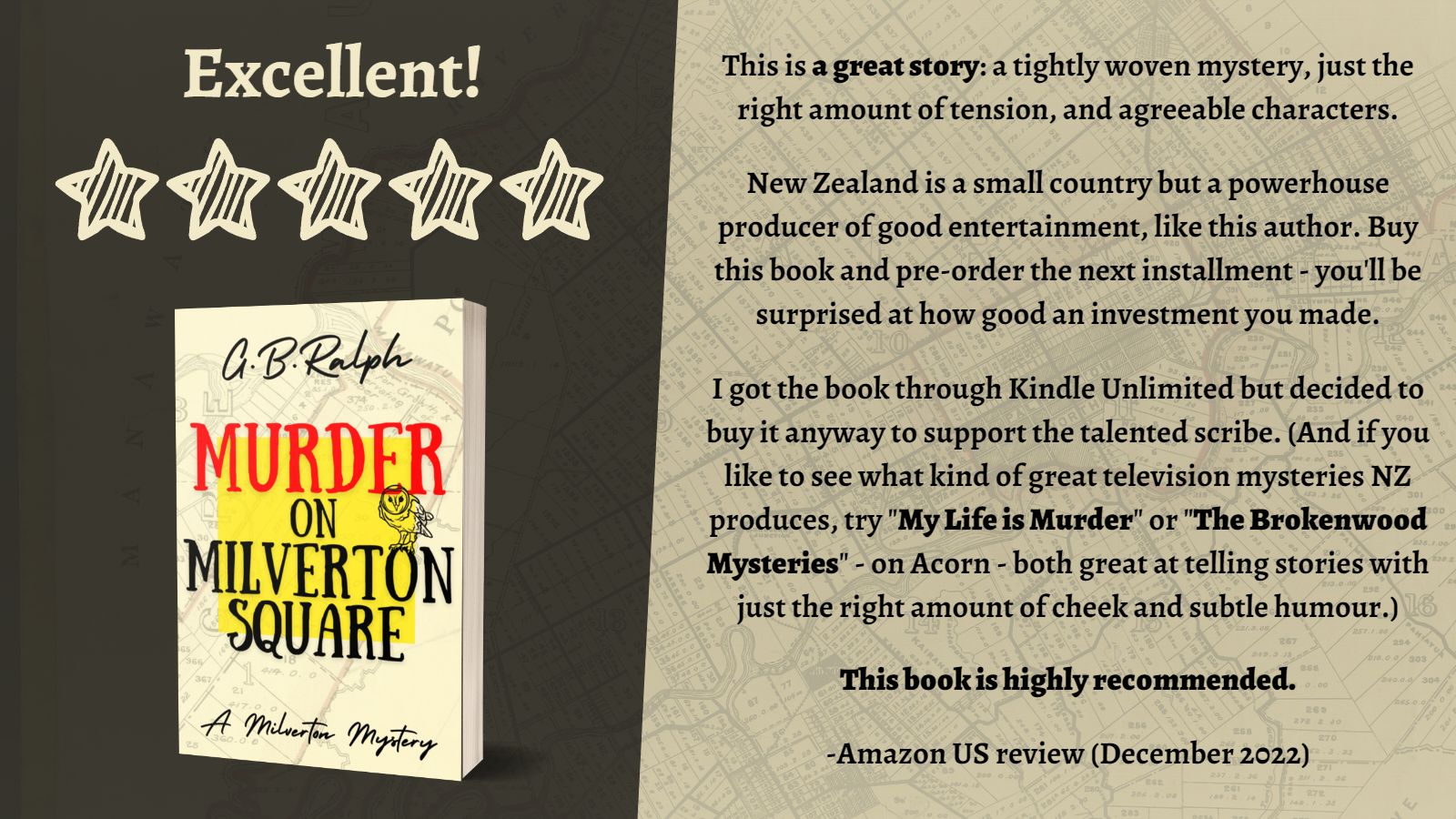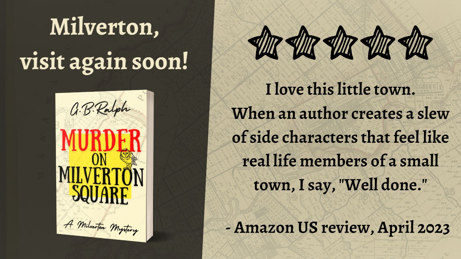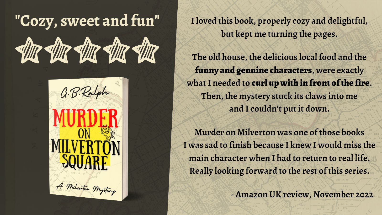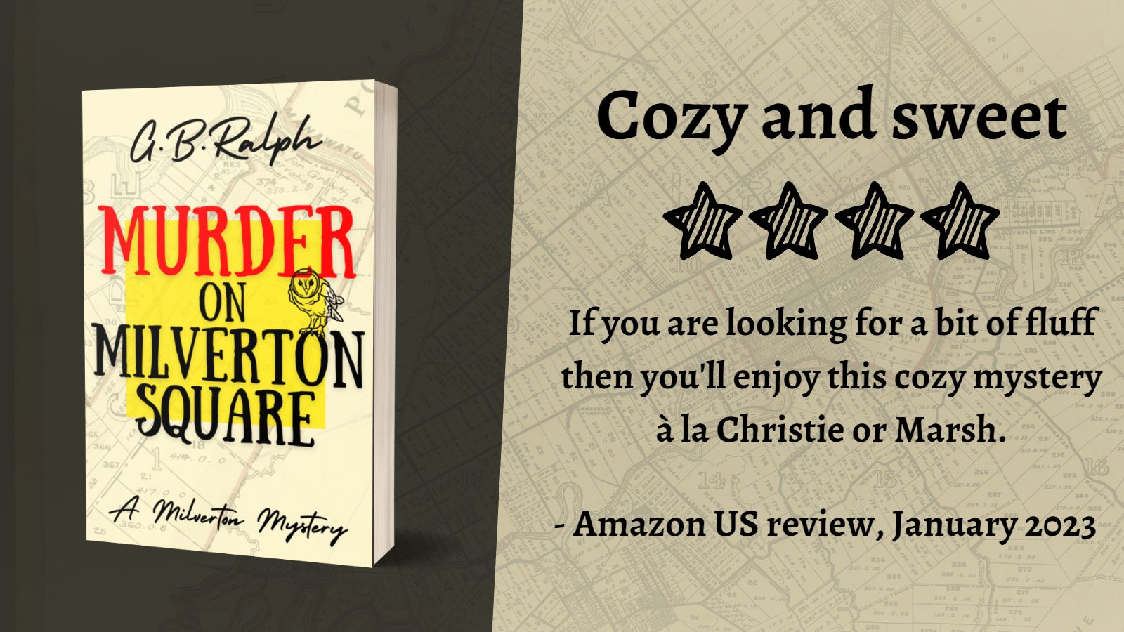 ![Murder on Milverton Square (A Milverton Mystery) by G. B. Ralph. Cover image and review, screenshot from TikTok and review transcript.