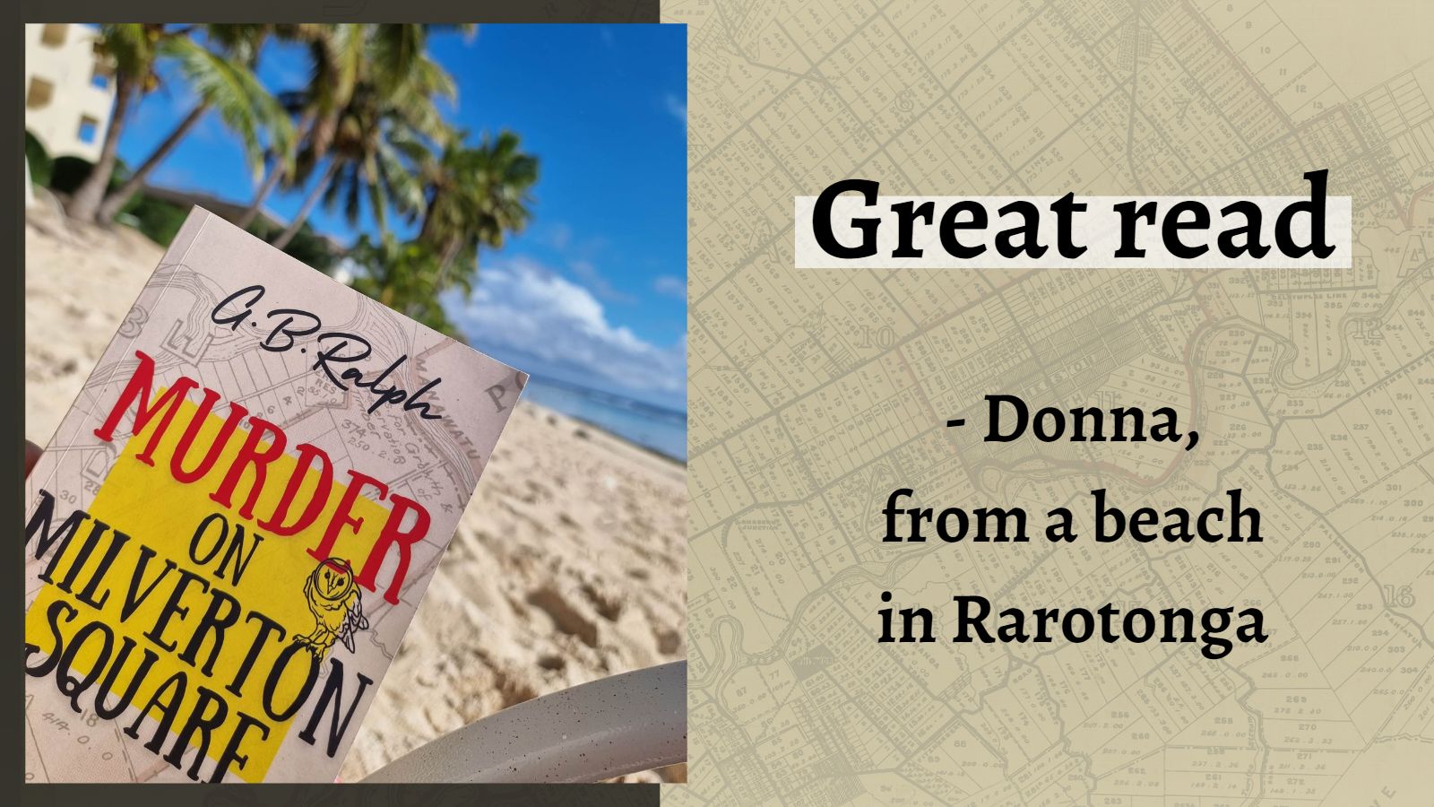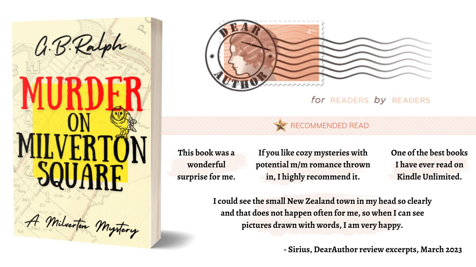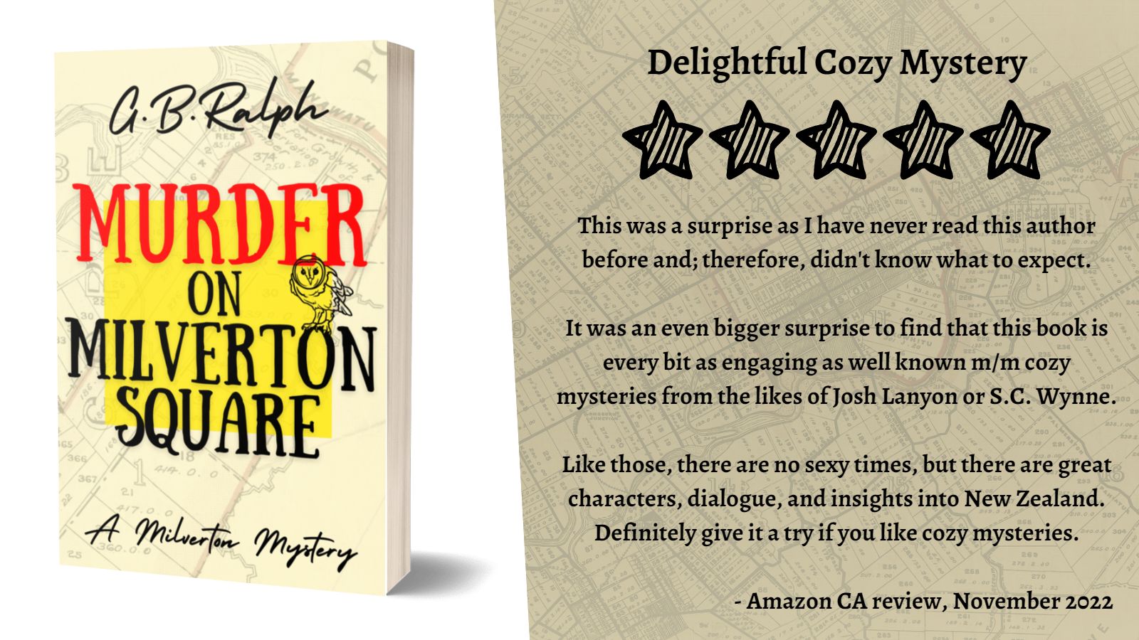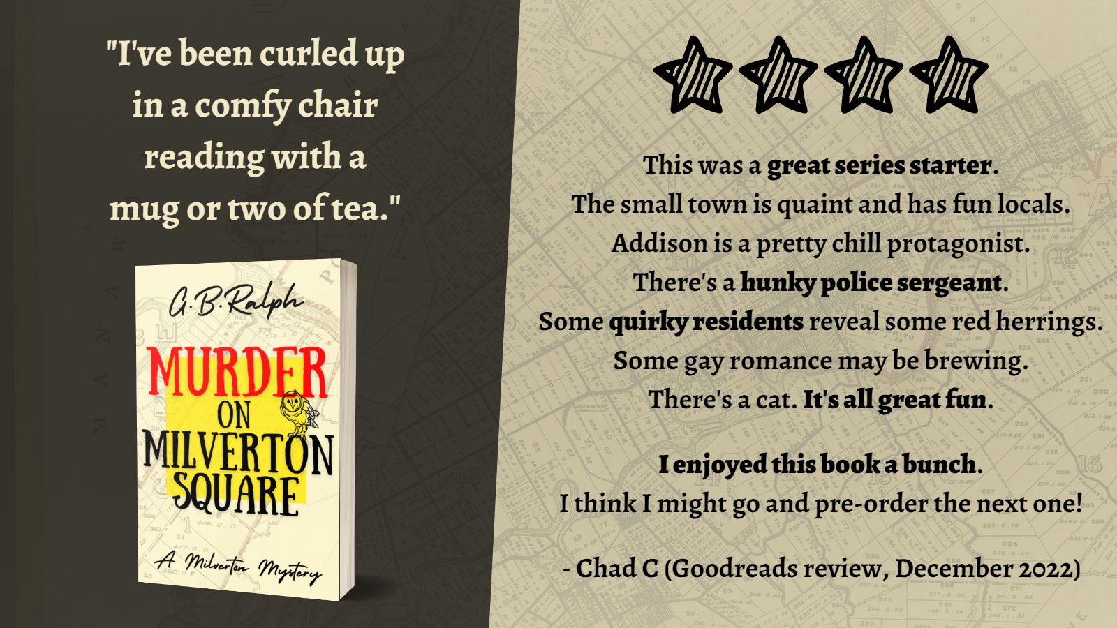 ![Murder on Milverton Square (A Milverton Mystery) by G. B. Ralph. Cover image and review, screenshot from TikTok and review transcript.